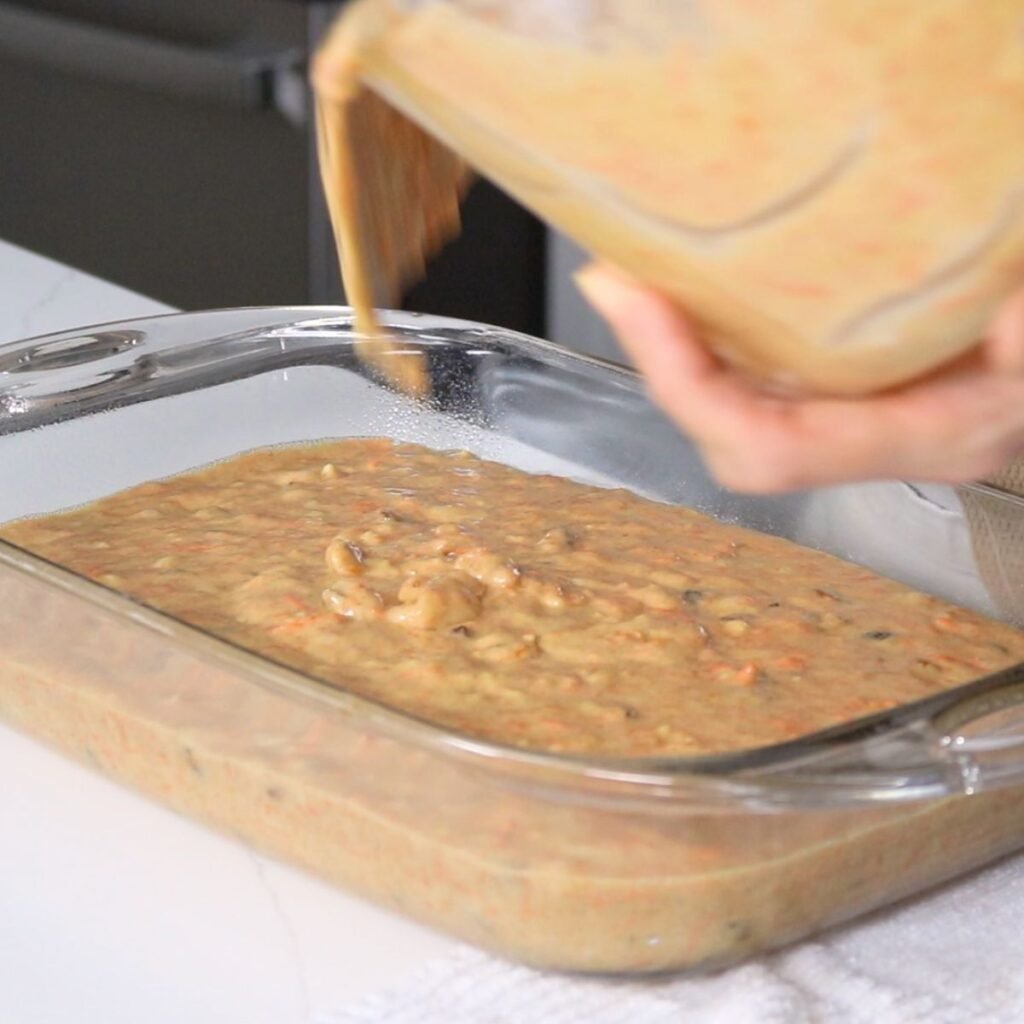 - Preheat the oven to 350โ and prepare your pans with baking spray. You can make this in a 9×13 pan OR (3) 8 inch round pans.